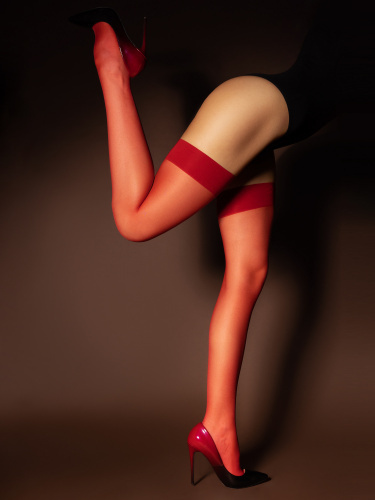 Красные матовые капроновые чулки под пояс – тот элемент одежды, который должен быть у каждой женщины. Главными отличительными особенностями этой модели являются их длина и обхват. На модели они надеты выше середины бедра, но, вы должны знать, что их можно расположить еще выше, при росте 175 см они свободно могут доходить до ягодиц и не пережимать ногу. Благодаря особому плетению затемненные полосочки, если они появятся, можно убрать, поочередно потянув материал сначала по горизонтали, а потом по вертикали несколько раз. Так же стоит заметить, что чулки имеют анатомический рельеф, а значит сидеть на ноге они будут идеально по определению. Выпускаются в размерах 2/3 и 4/5.