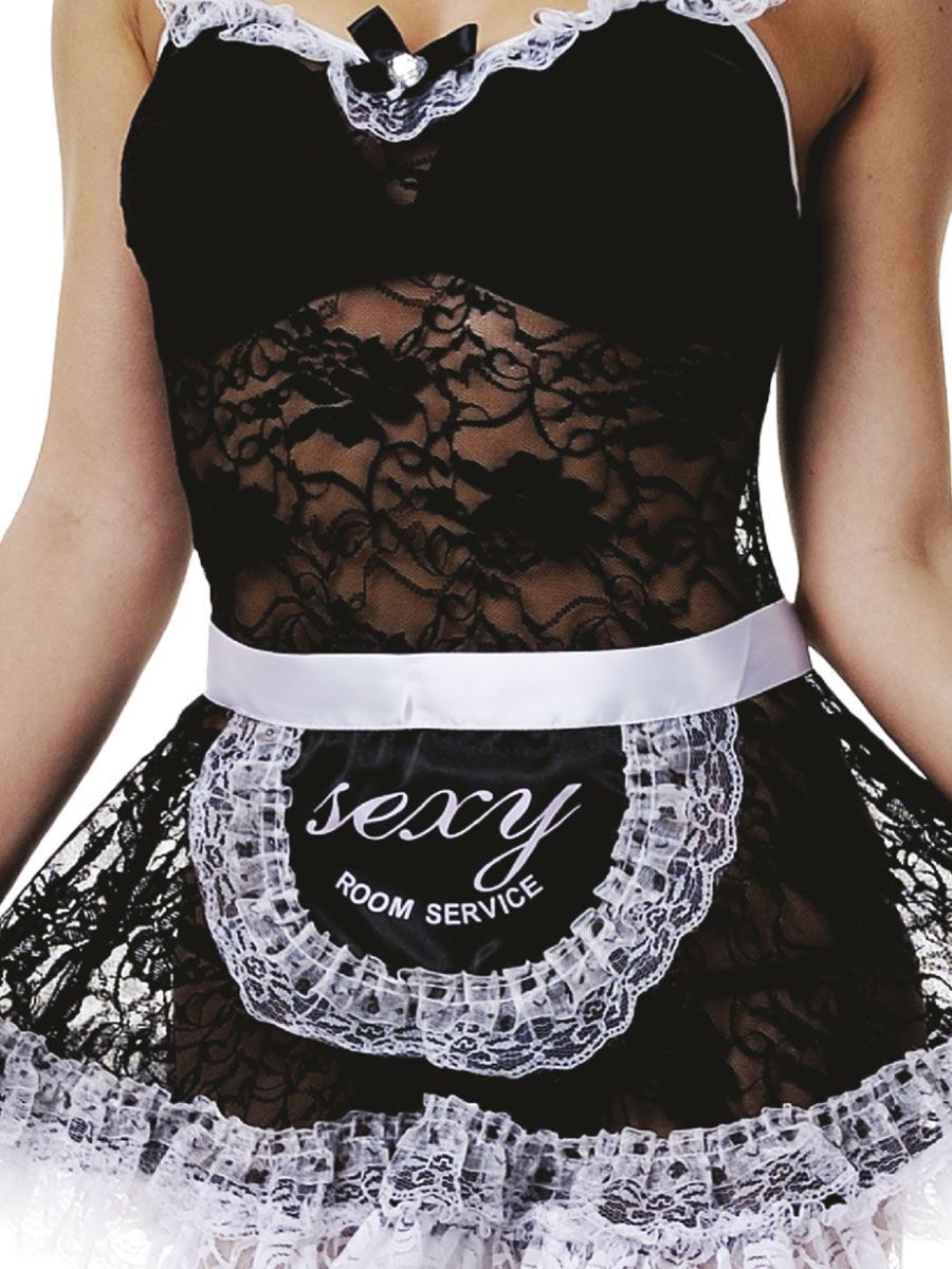 Симпатичное маленькое платьице черного цвета с полупрозрачной юбочкой – это игровой костюм домработницы. Наряд для хорошенькой скромной девушки, без излишней открытости.