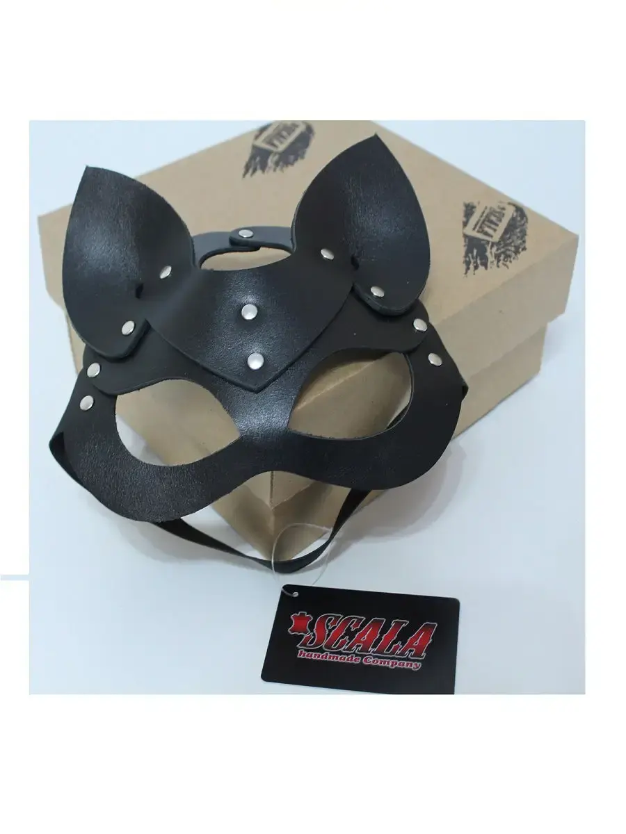 Маска из натуральной кожи, чёрная, с кошачьими ушками
