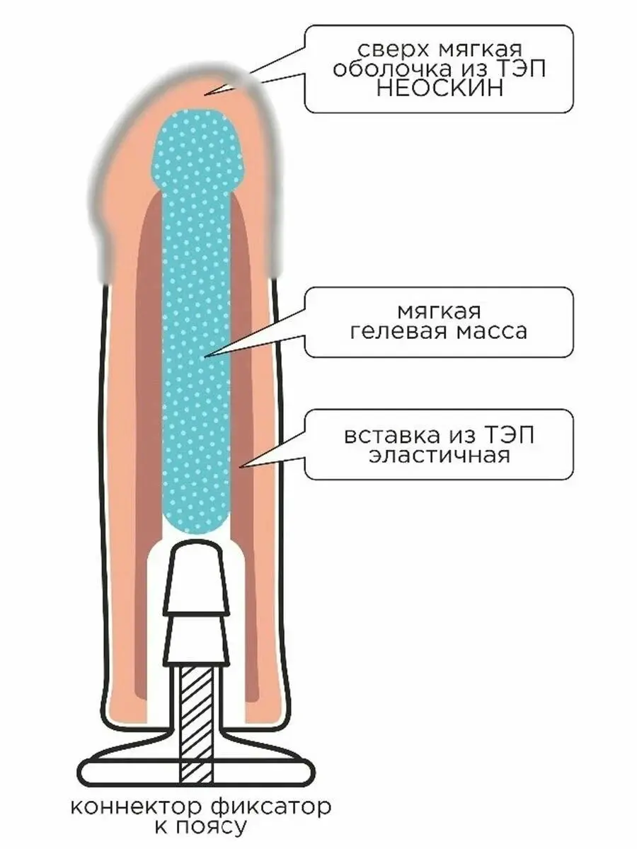 Страпон Glamour black с насадкой 17 см